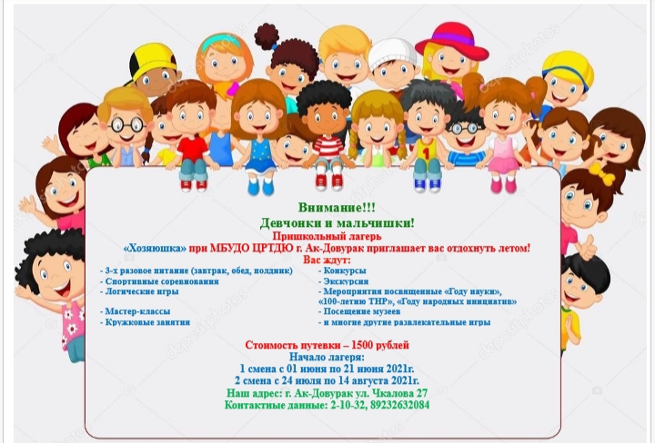 16.06.2021 г. в пришкольном лагере «Хозяюшка» при МБУ ДО ЦРТДЮ провели день: «День творчества!». Охват детей — 43. Был проведен конкурс поделок: «Умелые руки не знают скуки» среди отрядов. Разучивали танцевальный флэшмоб: «Мы маленькие звезды». На стадионе им. О. Федора воспитанники участвовали в веселых стартах среди пришкольных лагерей города Ак-Довурак и заняли 3 место. Мероприятие прошло на хорошем организационном уровне.