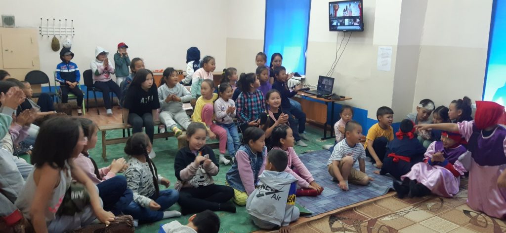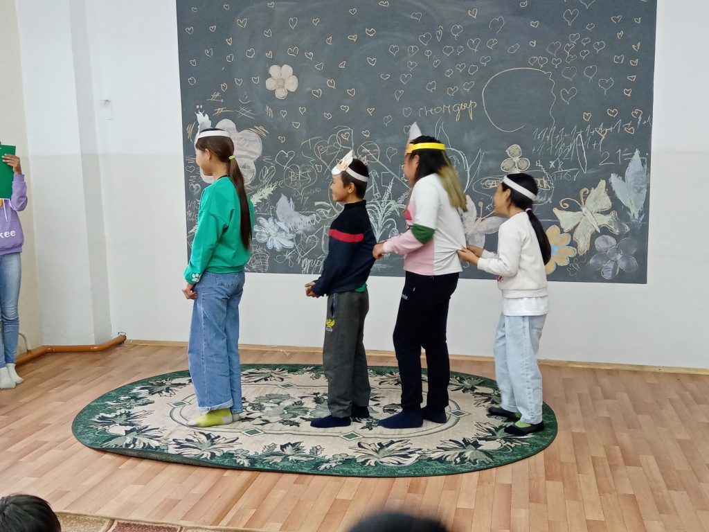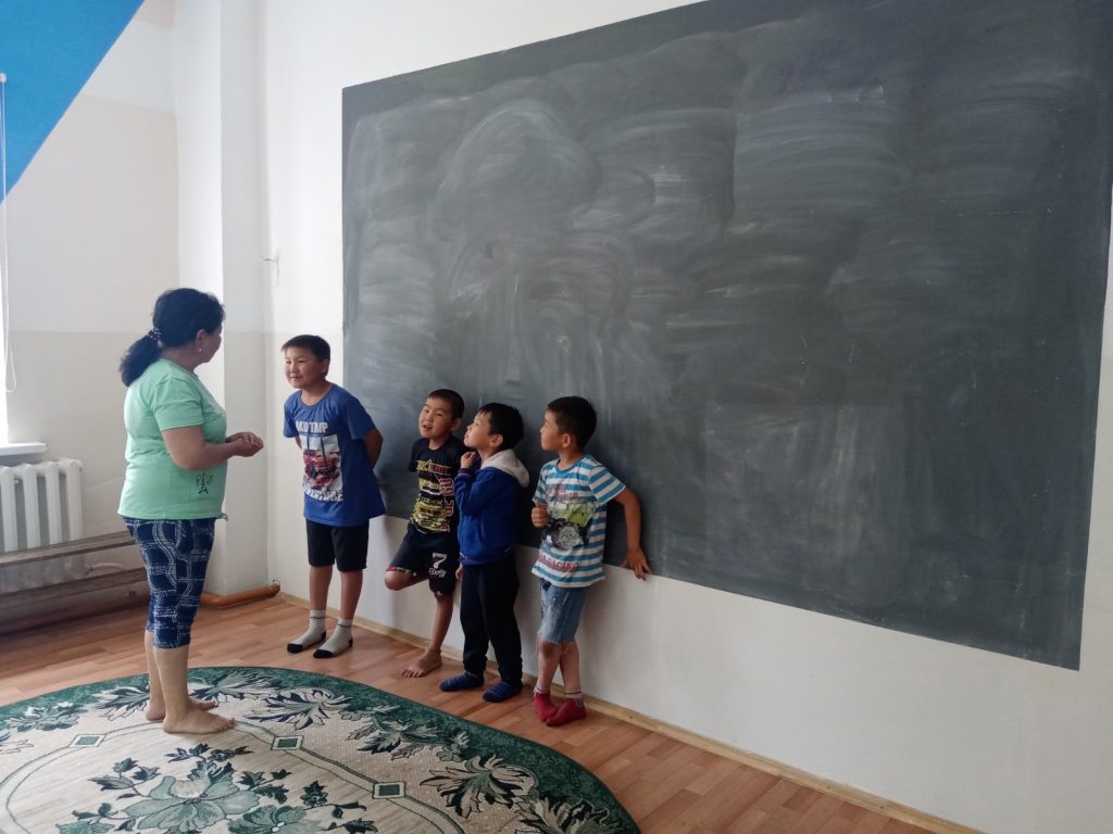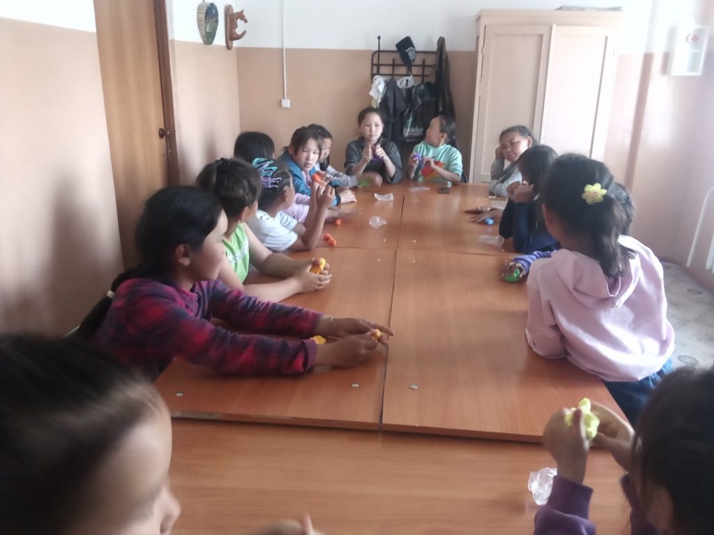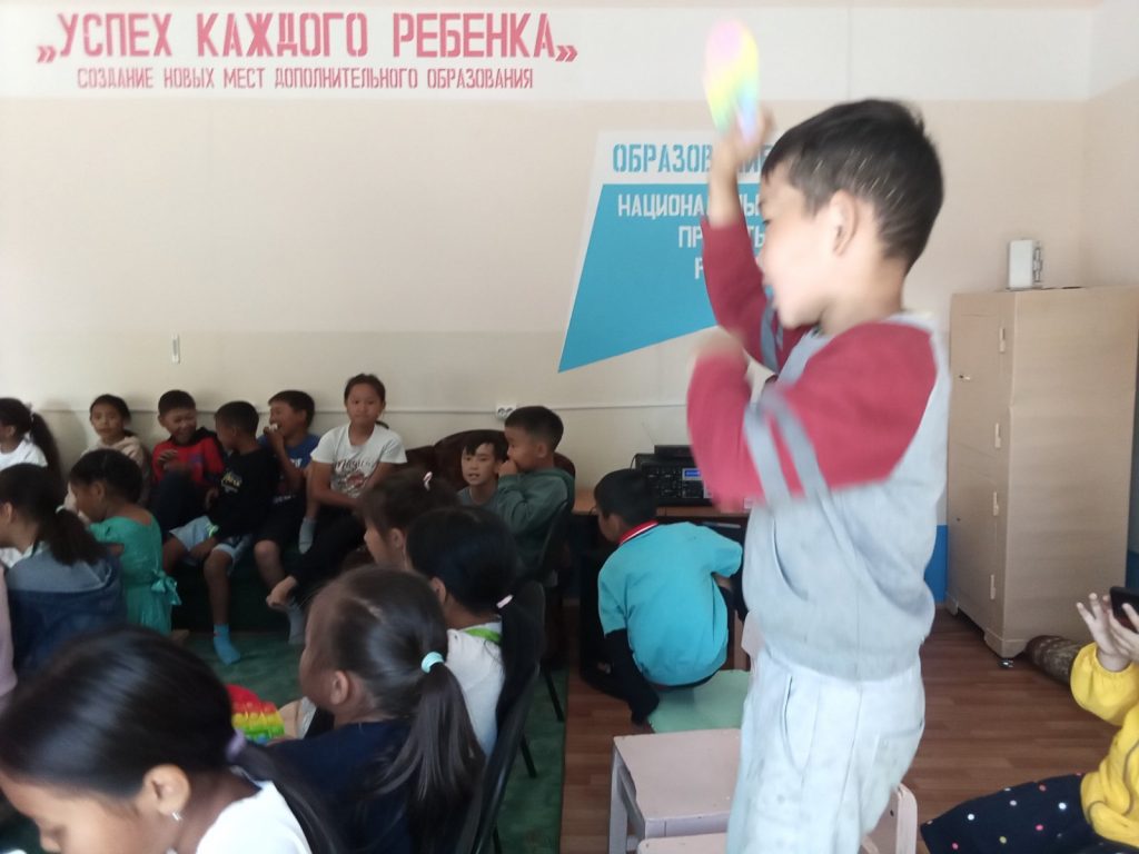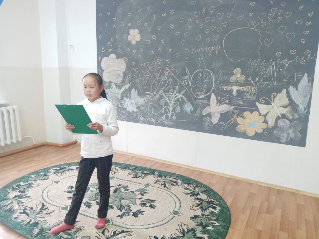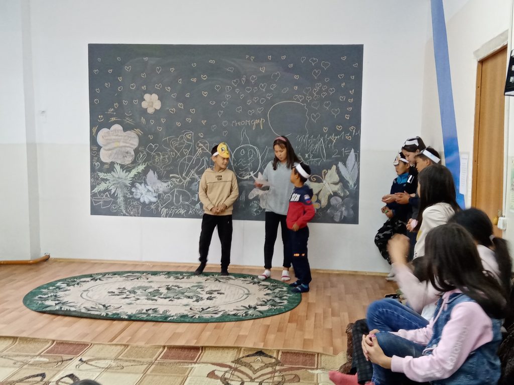 Очень активно отвечали на вопросы, отгадывали по картинкам имена зверей и насекомых, по растительным вопросам хорошо знал Иргит Цемчол
