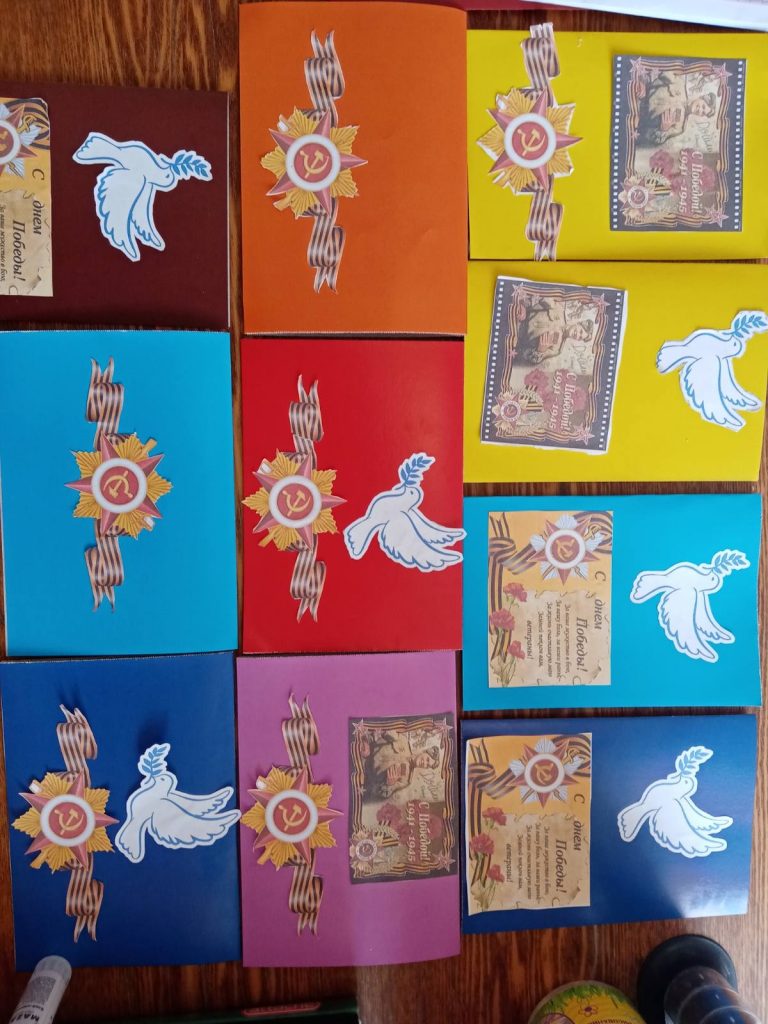 Учащиеся объединения «Умелые ручки» сделали открытки ко Дню Победы отцам, дедушкам.