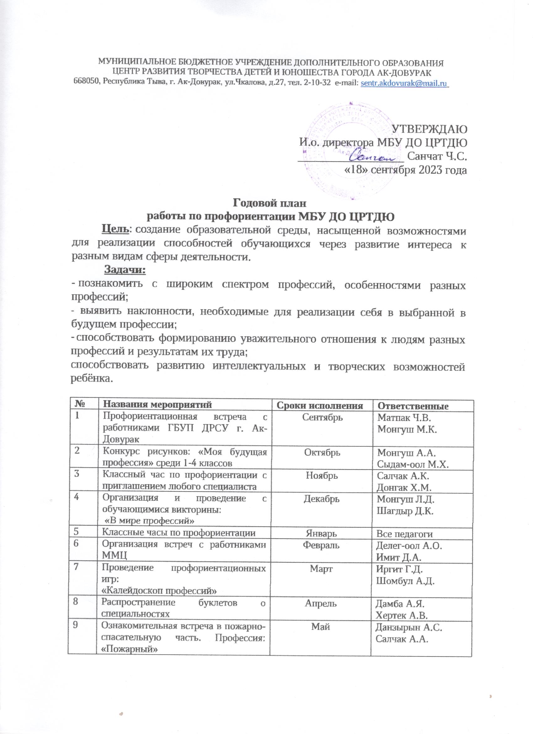 16 апреля 2024 года педагог МБУ ДО ЦРТДЮ Салчак А.А. провели акцию «Профессия каждая самая важная» и раздали информационные буклеты «Секреты выбора профессии»